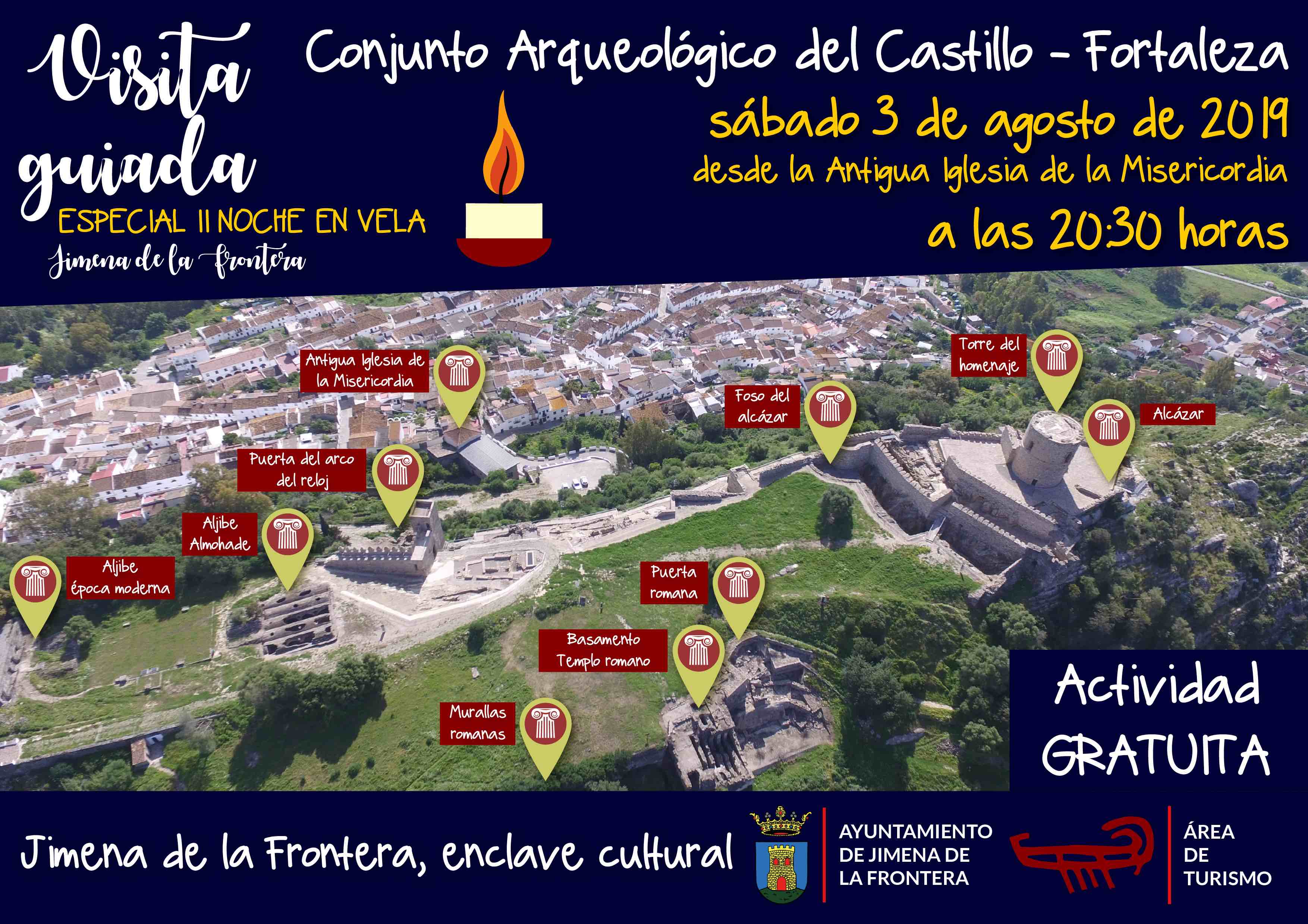 El próximo sábado 3 de agosto, con motivo de la organización de la II Noche en Vela de Jimena de la Frontera, el área de Turismo del Ayuntamiento ofertará una visita guiada por el conjunto del Castillo-Fortaleza para todos aquellos que se animen a disfrutar de un atardecer en un entorno privilegiado.