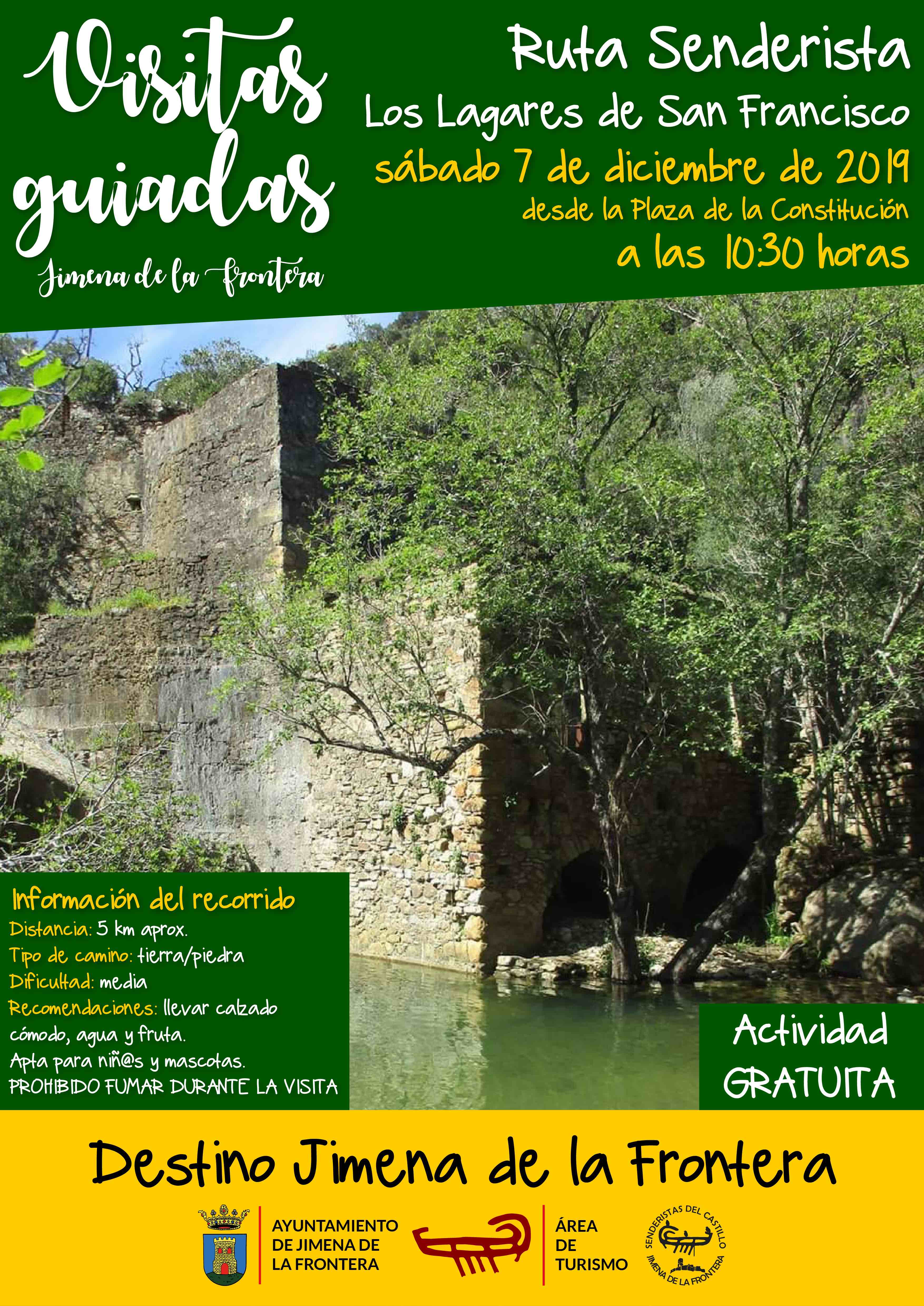 El área de Turismo del Ayuntamiento de Jimena de la Frontera, con la colaboración de la Asociación Senderistas del Castillo, tiene organizada por el puente festivo del día de la Constitución una ruta senderista por Los Lagares de San Francisco el próximo sábado 7 de diciembre de 2019. Un recorrido lineal de unos 5 km aprox. en el que se mezclan lagares romanos, caleras de épocas inmemoriales, señas de la importante identidad de los antiguos molinos harineros que se construyeron a orillas del Río Hozgarganta, y todo en un marco idílico como es el Parque Natural Los Alcornocales en Jimena de la Frontera.