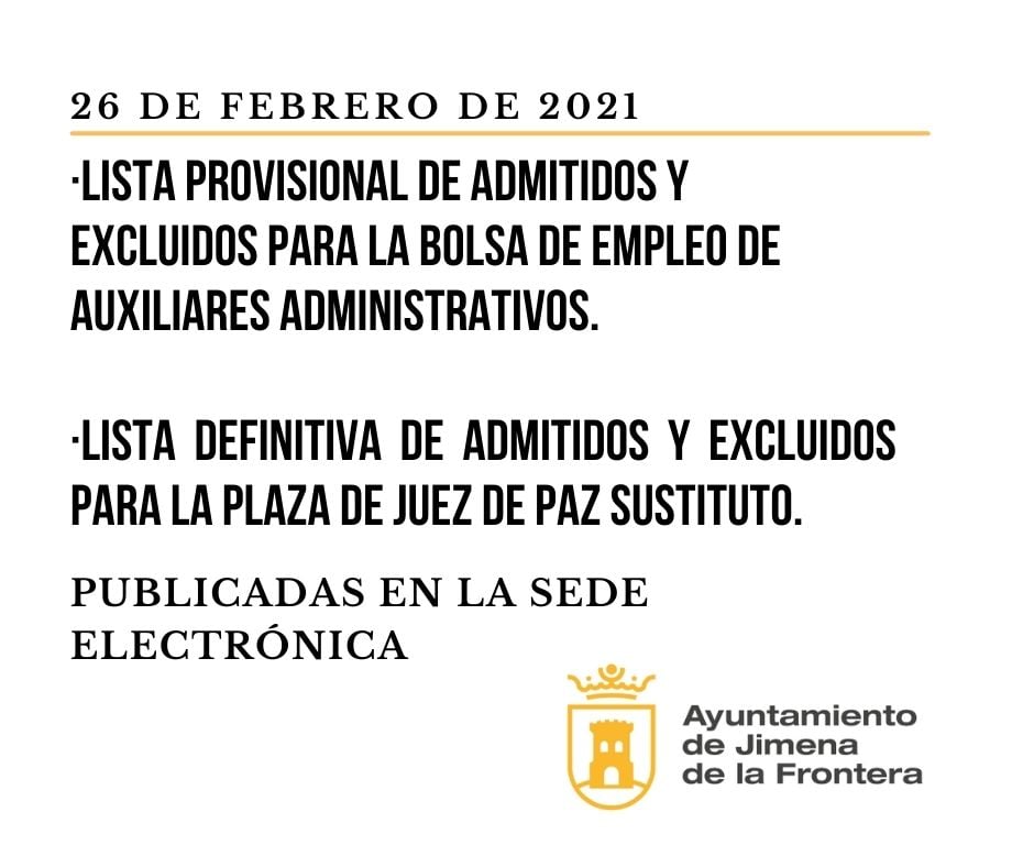 El Ayuntamiento de Jimena de la Frontera publica las siguientes listas de admitidos y excluidos para puestos de trabajo