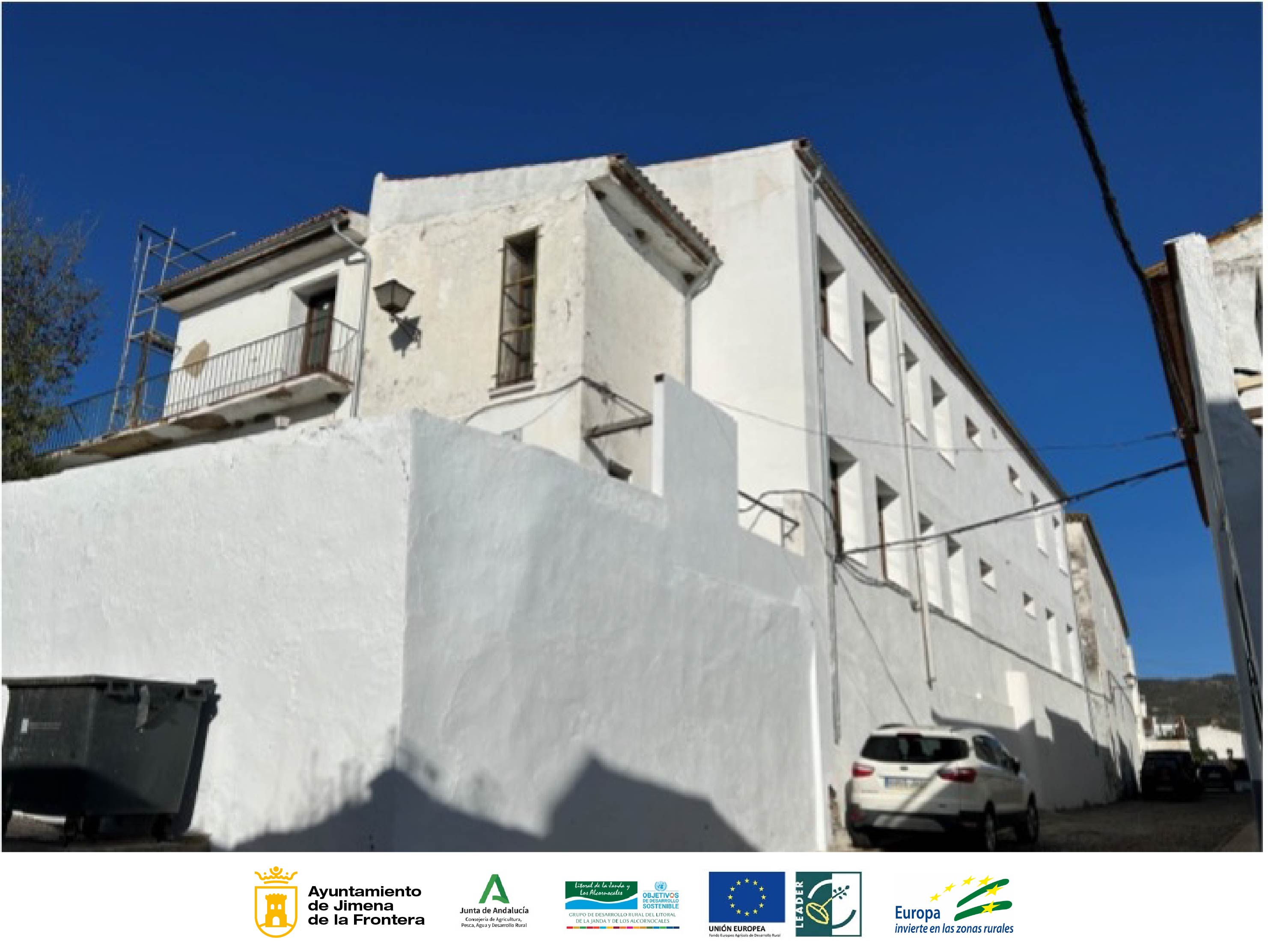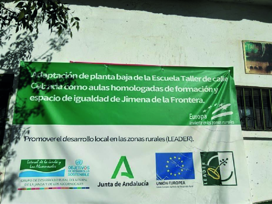 1. Mejora de la calidad de vida, habitabilidad, competitividad y capital social de la Zona Rural Leader de Los Alcornocales OGAPP1 ha recibido una ayuda para "Adaptación de Planta Baja de la Escuela Taller de calle Calzada como aulas homologadas de formación y espacio de igualdad", con el objetivo de dotar de espacios de encuentro al barrio alto de Jimena de la Frontera que, acercando las instalaciones a las personas y se configure como fuente de formación, mediante seminarios y cursos, en igualdad y corresponsabilidad de los papeles sociales de hombres y mujeres permitiendo, por su cercanía a la población, la conciliación de la vida personal, y familiar de las personas que utilicen estos servicios. Se pretende mejorar las instalaciones culturales para que se pueda ofertar un mejor uso de las mismas, en una zona del pueblo carente de servicios de formación. El importe de ayuda concedida asciende a 119.829,88 euros (con IVA 21% incluido), habiendo sido la inversión total solicitada de 120.000,00 euros (con IVA 21% incluido).