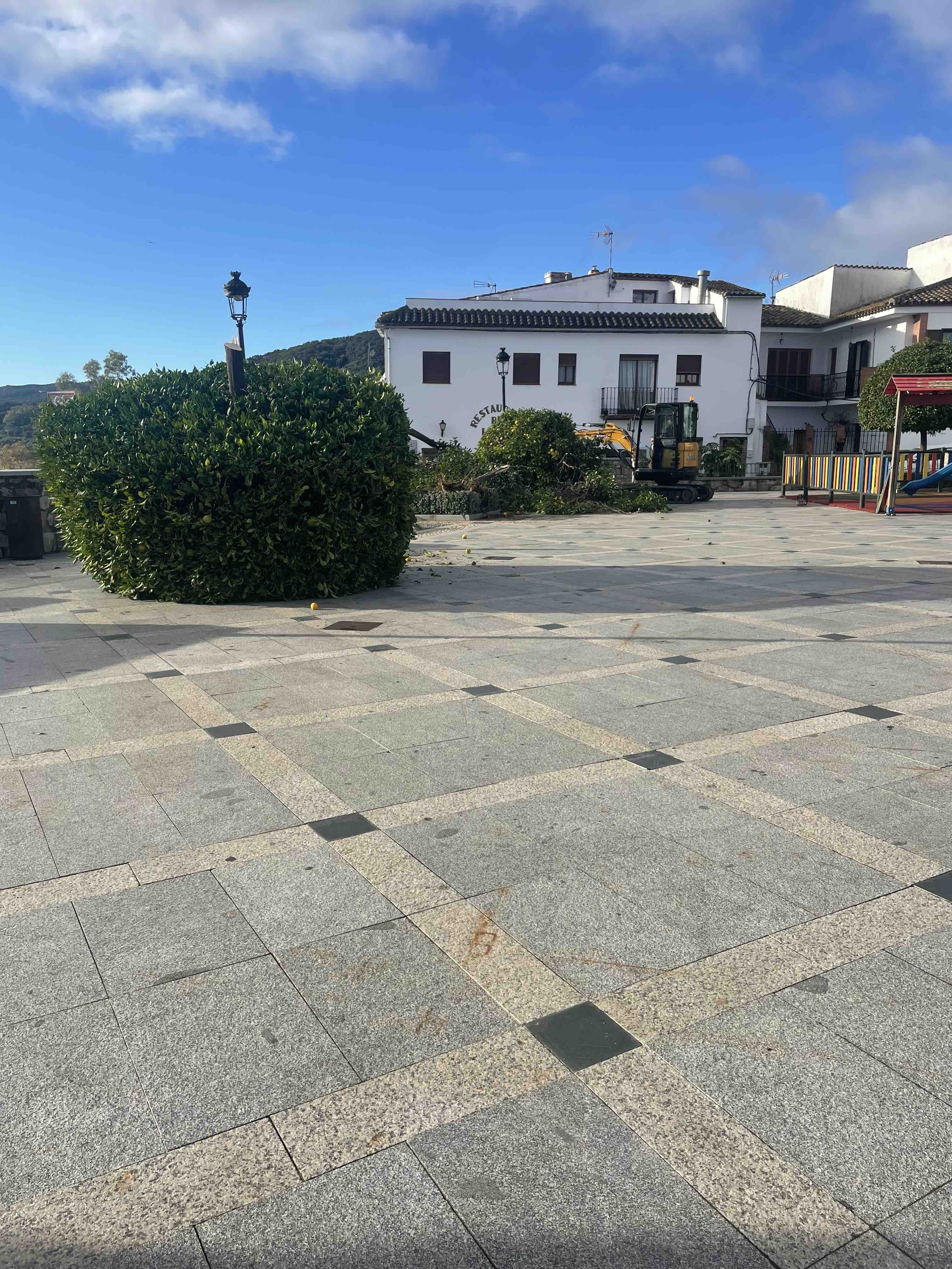 El Ayuntamiento de Jimena de la Frontera informa del inicio de los trabajos de renovación de la arboleda situada en la Plaza de la Constitución. La actuación consistirá en la sustitución de los actuales naranjos, entre los cuales se encuentran varios ejemplares secos o en avanzado estado de deterioro, por quejigos (Quercus canadiense), una especie autóctona.
