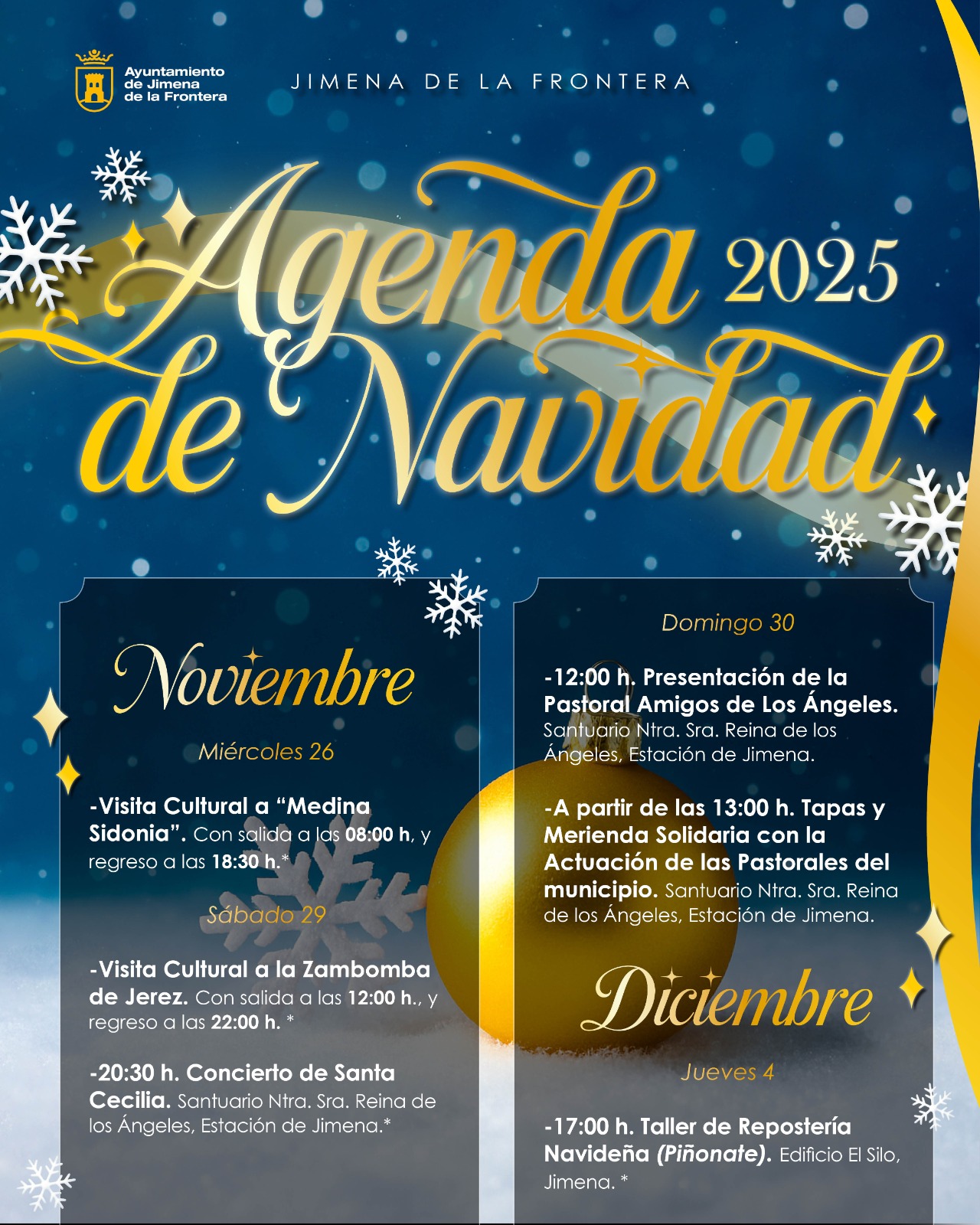 El Ayuntamiento de Jimena de la Frontera y la JMD de San Pablo de Buceite presentan la Agenda de Actividades y Eventos de Navidad 2025.