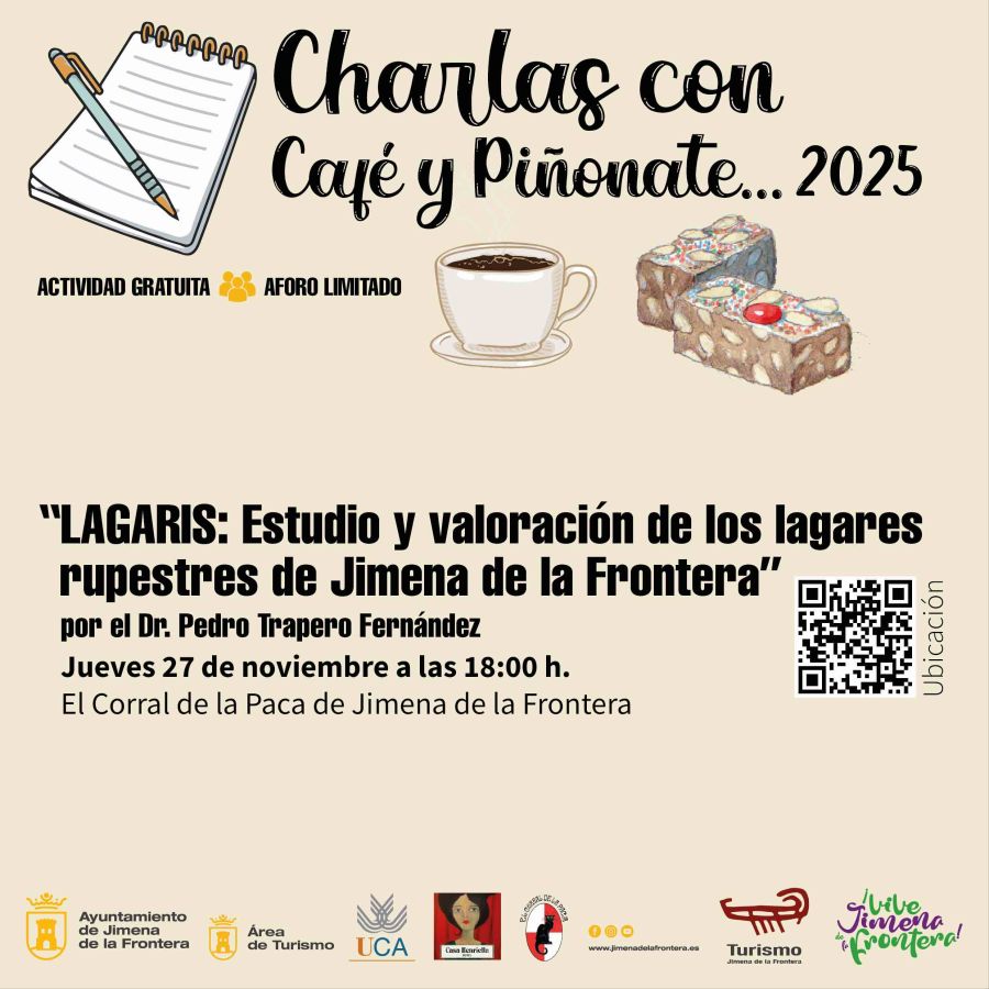 El Área de Turismo del Ayuntamiento de Jimena de la Frontera, dentro de la campaña de promoción del turismo local, ha organizado una serie de charlas científicas en alojamientos rurales bajo el título de ”Charlas con Café y Piñonate…”, con la finalidad de dar a conocer las diferentes instalaciones culturales y turísticas del municipio. En esta edición se han seleccionado temáticas relacionadas con la historia del entorno, en las que se expondrán los últimos y novedosos resultados de investigación de los trabajos que se están realizando en estos momentos en el municipio.