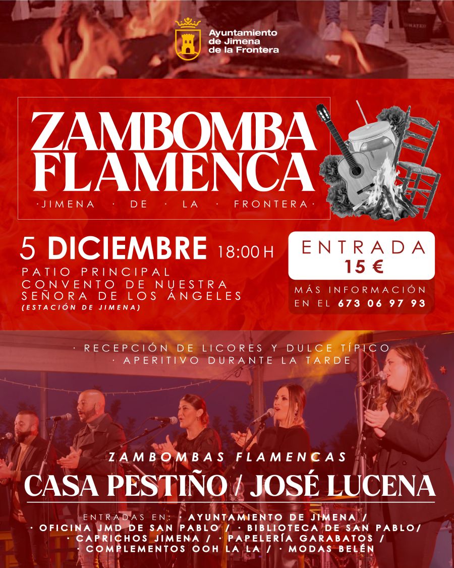 El próximo viernes 5 de diciembre de 2025, el Ayuntamiento de Jimena organiza una zambomba flamenca, a las 18:00 horas en el patio exterior del convento de Ntra. Sra. Reina de Los Ángeles, como novedad este año y como inicio de las actividades navideñas programadas.