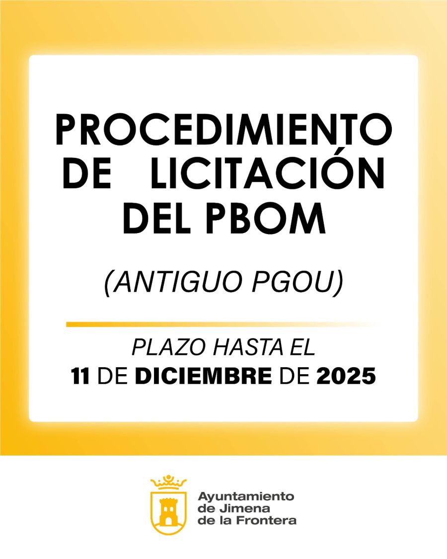 A partir de hoy y hasta el próximo día 11 de diciembre de 2025 se encuentra abierto en el Portal de Contratación del Estado, la licitación de la redacción del PBOM de nuestro municipio.