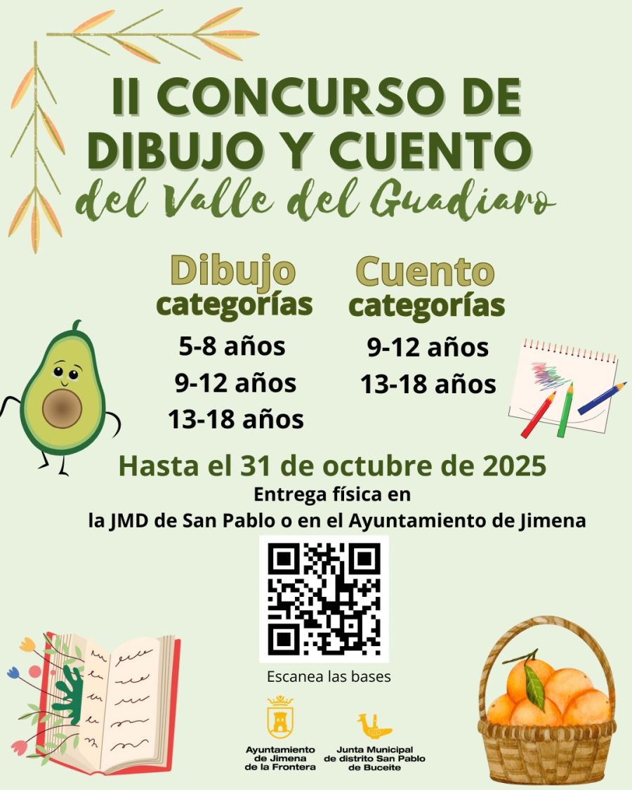 El Ayuntamiento de Jimena de la Frontera y la Junta Municipal de Distrito de San Pablo se complacen en anunciar el II Concurso de Dibujo y Cuento del Valle del Guadiaro para niños/as y jóvenes.